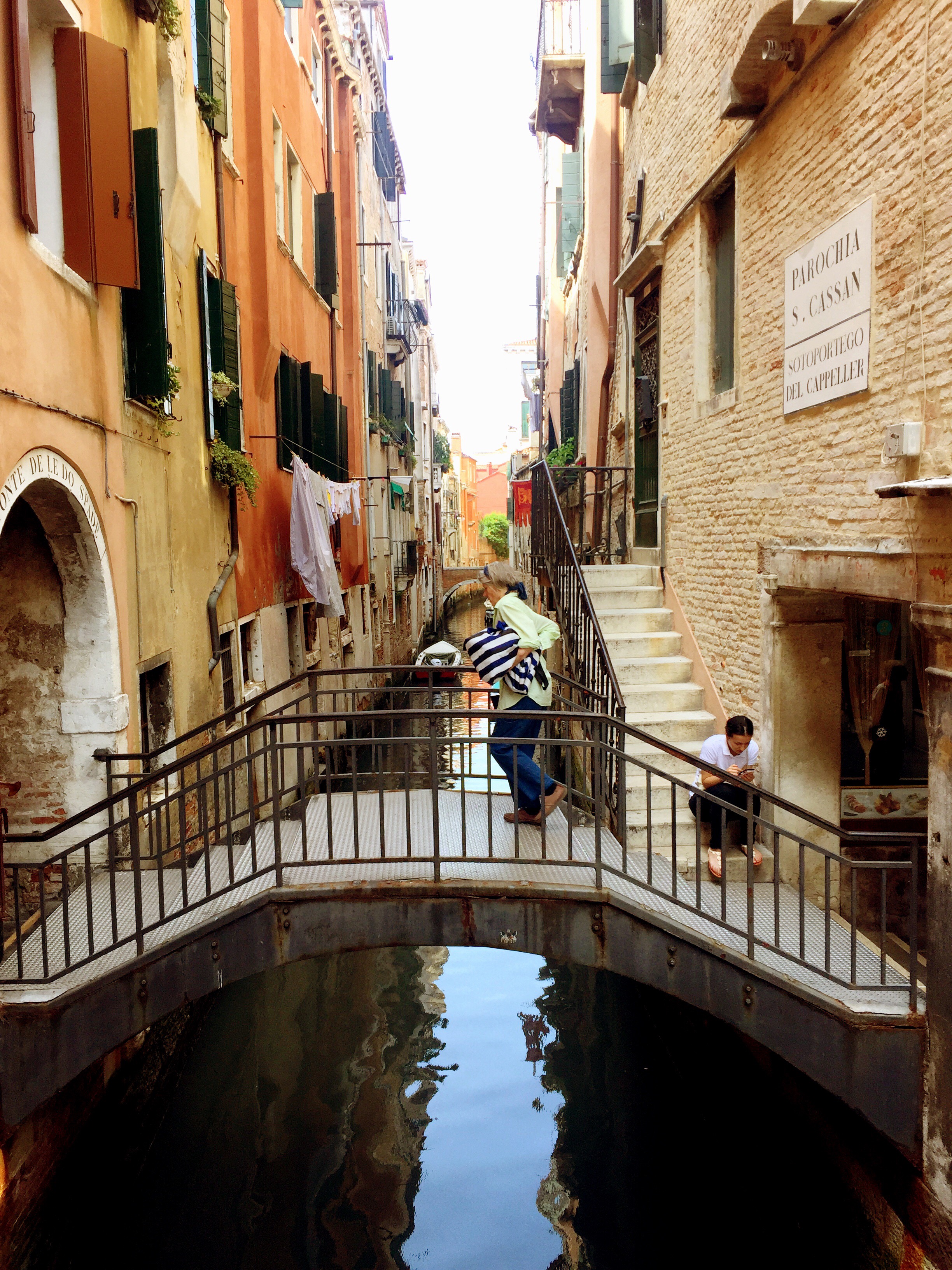 Komea silta, joka ylittää Grand Canalin. Kuvan paikka (raivaa tilaa kaiteelta esimerkiksi selfie-tikulla miekkailemalla).