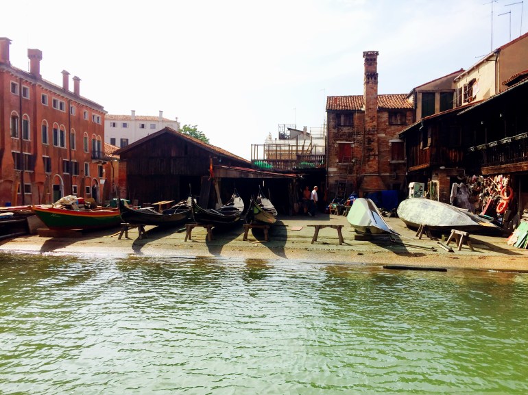 Gondoliverstas kanavan rannalla. Ukot valmistaa käsityönä upeita gondoleja ja vastarannalta tätä pääsee katsomaan livenä. Kiva pysähdys!