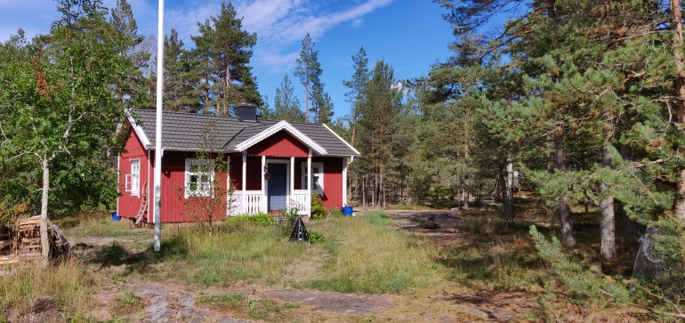 Laivalla meillä on hytti ja suurin osa matkasta kulutetaan lyhyeksi jääneitä yöunia paikkaillessa. Perillä olemme iltapäivän puolella ja ajelemme suoraan Maarianhaminasta Herröön, jonka punaisilla rantakallioilla eno on pitänyt mökkinsä paikkaa jo kymmeniä vuosia.