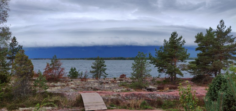 Sää on saapuessamme hieno ja aurinkoinen. Taivaanrannassa näkyy kuitenkin häivähdys tummaa pilveä, joka vyöryy nopeasti Ruotsin puolelta kohti saarta ja muuttaa kauniin kesäpäivän hetkessä synkäksi ja myrskyiseksi syysillaksi. Ukkonen jyrisee ympärillä ja sähköt katkeavat hetkeksi.