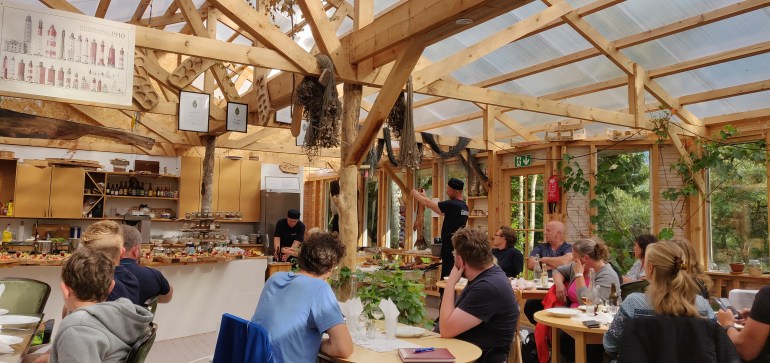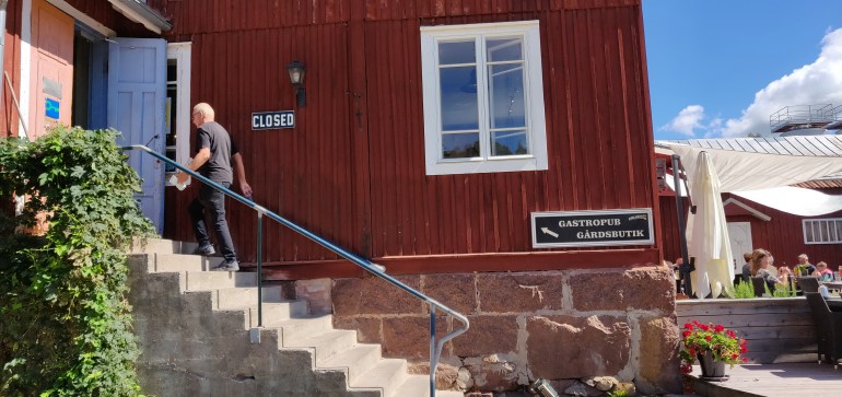 Onneksi ukkonen menee ohi nopeasti ja pääsemme melko kuivina illalliselle läheiseen ”ravintolaan”. Lainausmerkit siksi, että kyseessä on pariskunnan pitämä ravintola, joka avataan vain satunnaisesti. Anders ja Maria tekevät työkseen ihan muuta, mutta intohimo ruokaan on saanut heidät rakentamaan kasvihuoneravinola Västerron. Ruoaksi tarjoillaan pääasiassa itse kalastettua kalaa. Savustettuna. Oikeastaan kaikki, mitä pöytään tulee on savustettua. Loppuillasta kokki Anders innostuu niin, että tarjoilee jopa savustettua Coca Colaa, Fantaa ja salaatinlehtiä.