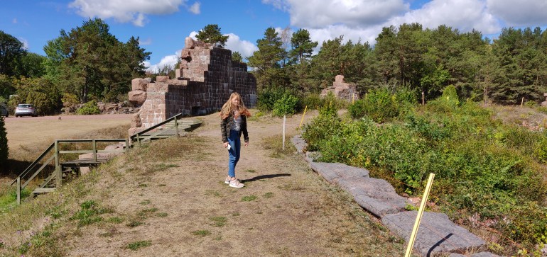 Lounaan jälkeen ajelemme pääsaarta itään kohti Bromarsundin linnoitusta. Paikan rauniot muistuttavat 1800-luvun puolivälissä käydystä Oolannin sodasta ja Bromarsundin taistelusta, jossa ranskalaiset yhdessä brittiläisten kanssa pommittivat mereltä pitkän kantaman tykeillään tämän keskeneräisen linnoituksen maan tasalle.