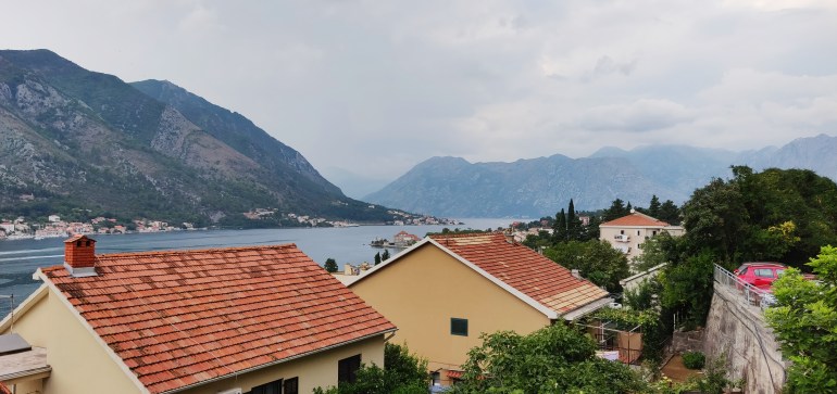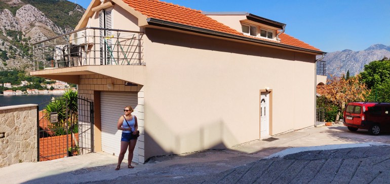 Varasimme Kotorista edullisen (noin 35 euroa/yö) Airbnb -kämpän, joka osoittautui kaikin puolin hyväksi valinnaksi. Kyseessä ei ollut kuitenkaan kenenkään koti, vaan yksityisen majatalon huone isolla parvekkeella, josta meillä oli merinäköala.