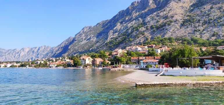 Varsinaisia uimarantoja Kotorista ei kauhean montaa löydy, mutta uimaan kyllä pääsee. Rannat ovat hyvin pieniä ja kivisiä. Hiekkarantoja ei löydy. Parina iltana kävimme uinnilla auringonlaskun aikaan, kun valtaosa ihmisistä oli häipynyt rannalta. Vesi on kirkasta ja mukavan viileää kuuman päivän jälkeen.