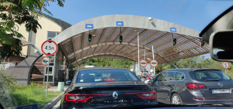 Rajamuodollisuuksiin meni menomatkalla yllättävän vähän aikaa. Jonoa ei juuri ollut ja pääsimme vartissa molemmasta tarkastuspisteestä läpi. Meille vinkattiin, että Albanialaisen auton perään ei kannata jonossa ajaa, koska näillä saattaa kestää rajatouhuissa. Väite osoittautui meidän tapauksessa vääräksi, sillä löysimme itsemme (tietenkin) albaanin perästä ja hyvin sukkelasti hän pääsi maahan. Paluumatkalla jonoa oli rajalla jonkin verran ja aikaa taisi mennä 1,5 tuntia. Kiireessä ei siis kannata lähteä liikkeelle. Rajalla on aina tarkastukset, koska Montenegro ei kuulu Euroopan Unioniin, toisin kuin Kroatia. Sitten kuitenkin EU:hun kuulumaton Montenegro käyttää Euroa valuuttanaan, toisin kuin EU-maa Kroatia. Hankalaksi on tehty tämäkin.