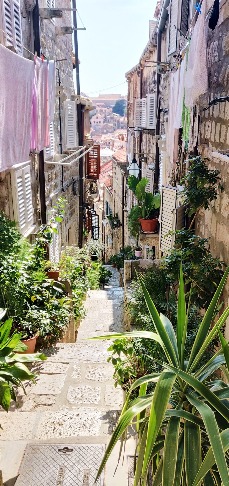 Paluumatkalla yövyimme vielä yhden yön Dubrovnikin vanhassa kaupungissa. Montenegron jälkeen paikan hintataso löi kuin nyrkillä suoraan päin näköä. Löysimme yhden kivan lounasravintolan, mutta pelkät ruoat olisivat maksaneet 70 euroa, joten menimme yhteen edullisimmista paikoista, jossa söimme 25 euron lounaan.