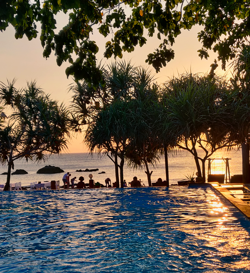 Tämän yhden päiväretken lisäksi keskityimme Mookilla pääasiassa oleiluun. Iltaisin ennen ruokailua kiersimme hotellin niemen kenties kauneinta näkemääni hiekkarantaa pitkin auringonlaskua katsellen. Hotellilla emme syöneet kuin aamiaista, sillä keskustan ravintolat olivat lyhyen kävelymatkan päässä ja ruoka niissä oli takuulla parempaa ja halvempaa, kuin resortin buffetissa.