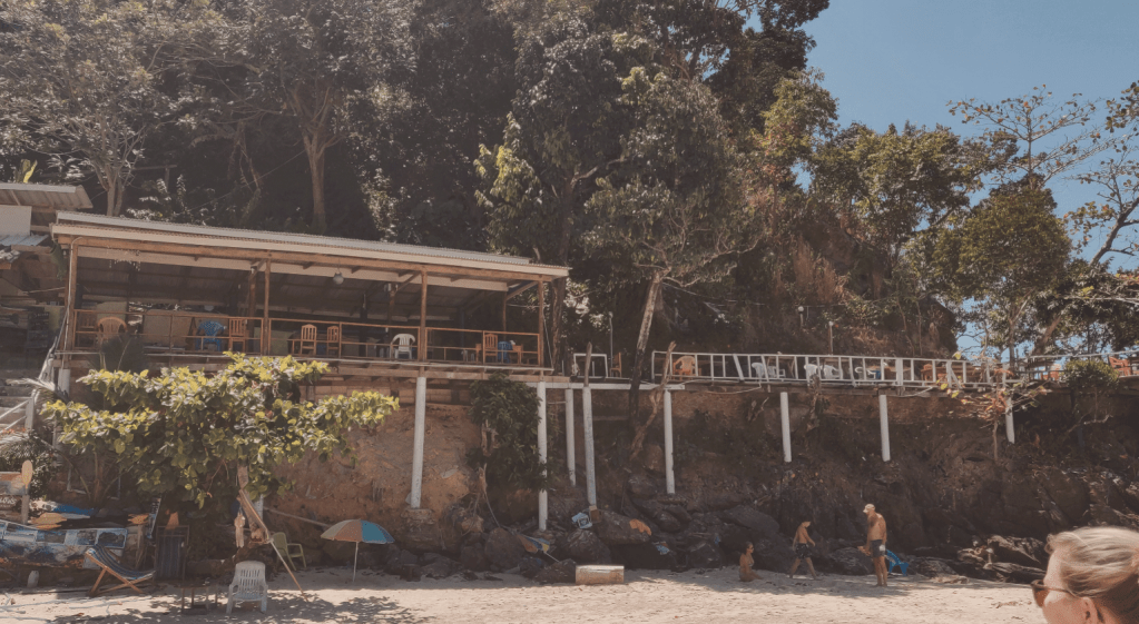 Koh Mookilla oli aika meidänkin hieman pysähtyä, sillä tekemistä tällä saarella ei kauheasti ole. Saaren keskusta on todella pieni, parin kadunpätkän mittainen ravintola- ja kauppakeskittymä ja hotelleja on maltillisesti. Mookillakin majoitusta on monen hintaista. Sivalai lienee saaren kallein hotelli, mutta muutamalla kympillä saa jo ihan kivan bungalowin toisesta majapaikasta. Yhden ”päiväretken” teimme saarella ollessamme kun vuokrasimme muutamalla eurolla skootterin ja ajelimme saaren toiselle puolelle Charlie Beachille, joka oli melko erikoinen näky. Rannalla ennen kukoistanut suuri resortti oli purettu (ilmeisesti puutteellisten lupa-asioiden vuoksi) ja nyt paikalla oli jonkinlaista rakennustyömaata muistuttava alue hotellin raunioiden kera. Kummallinen kontrasti, kun katselee paratiisirantaa ja sen takana onkin tuollainen törkyläjä. Ympärillä on kuitenkin majoitusta tarjolla, eikä ranta ollut missään nimessä tyhjä (joskin hyvin rauhallinen). Charlie Beachin lähellä sijaitsee myös saaren kovasti kehuttu Hilltop -ravintola, jossa nautimme herkullisen lounaan. Toinen suositukset ansaitseva ravintola Mookilla on Sugar’s Coffee & Restaurant, jossa söimme pariin otteeseen.