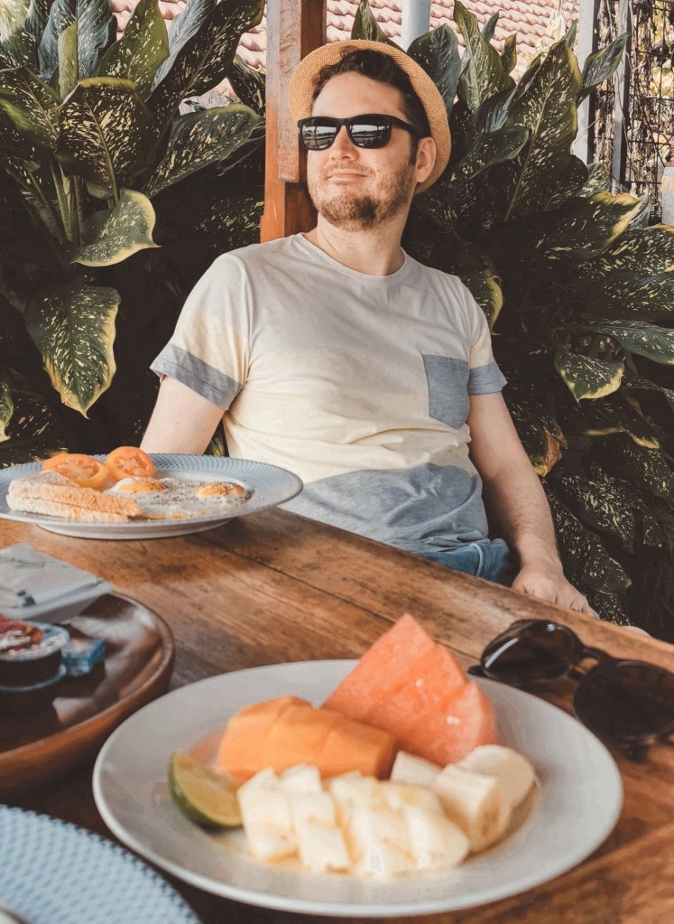 Villalla oli henkilökuntaa kahden herrasmiehen verran. Yksi Putu hoiti kuljettamiset ja skootterin vuokraukset ja toinen Putu teki aamiaiset ja siivosi talon. Putu ja Putu, veikeitä kavereita! Griya Private Villa löytyy esimerkiksi Booking.comista ja se on vuokrattavissa kahdelle (pelkkä alakerta) tai isommalle porukalle (ala- ja yläkerta).